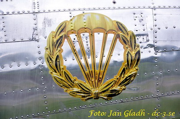 | Uthopp från DC-3. Foto från Örnen nr 68 - FJS 25 år (1977) - okänd fotograf. |
