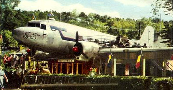 Klicka här för att se en broschyr och några vykort från tiden när det begav sig. Klicka här för att se Konditori DC-3:s Allsångs-Blad från 1949.