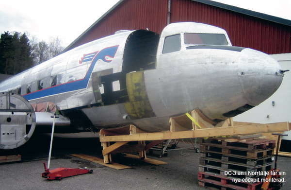 Klicka här för att se vad som hände med den "gamla" nosen. I juli 2006 ställdes flygplanet ut i en inhägnad vid Hotell Roslagen i Norrtälje.