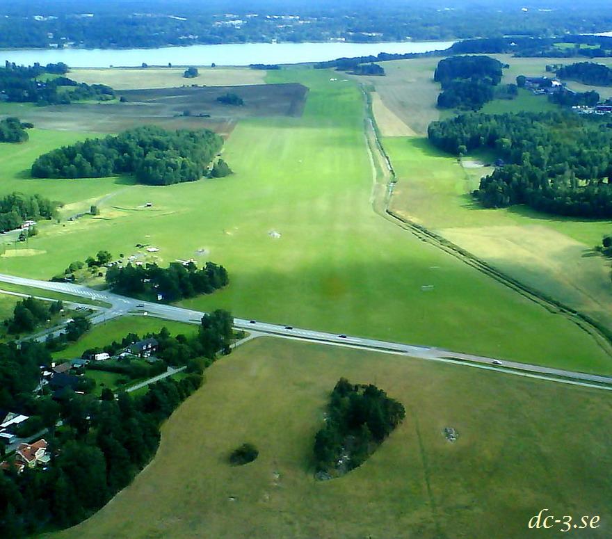 | Vallentuna ekologiska flygfält fotograferat från Congo Queen den 15 augusti 2009. Foto © dc-3.se |